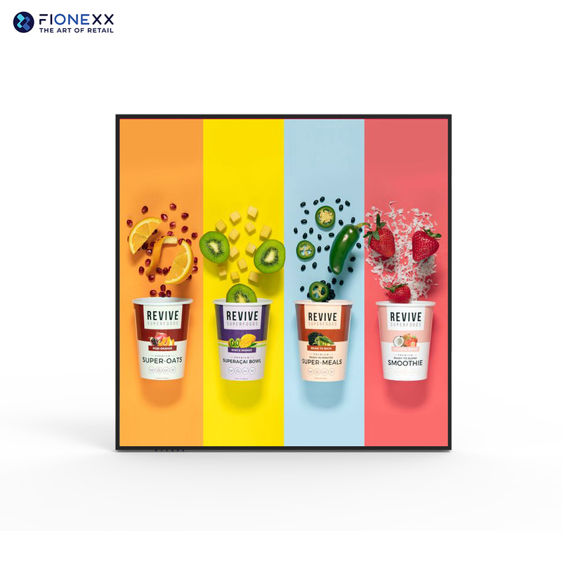 Με ένα εξαιρετικά λεπτό προφίλ και περιμετρικό, η τετράγωνη οθόνη είναι ιδανική για μια σειρά από καταστήματα λιανικής πώλησης για να ταιριάζει σε εξατομικευμένες κατασκευές και μοναδικά σχέδια.